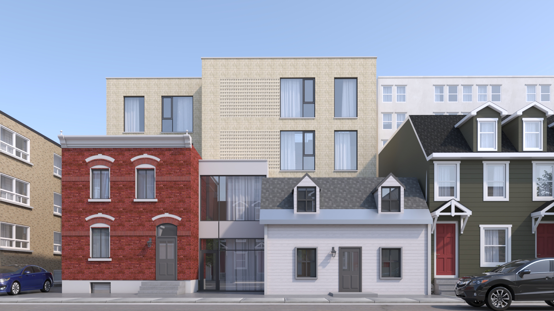 The proposed development includes the retention and restoration of the two (2) existing heritage buildings at 168 and 174 Murray Street and development of a four-story low-rise residential apartment building